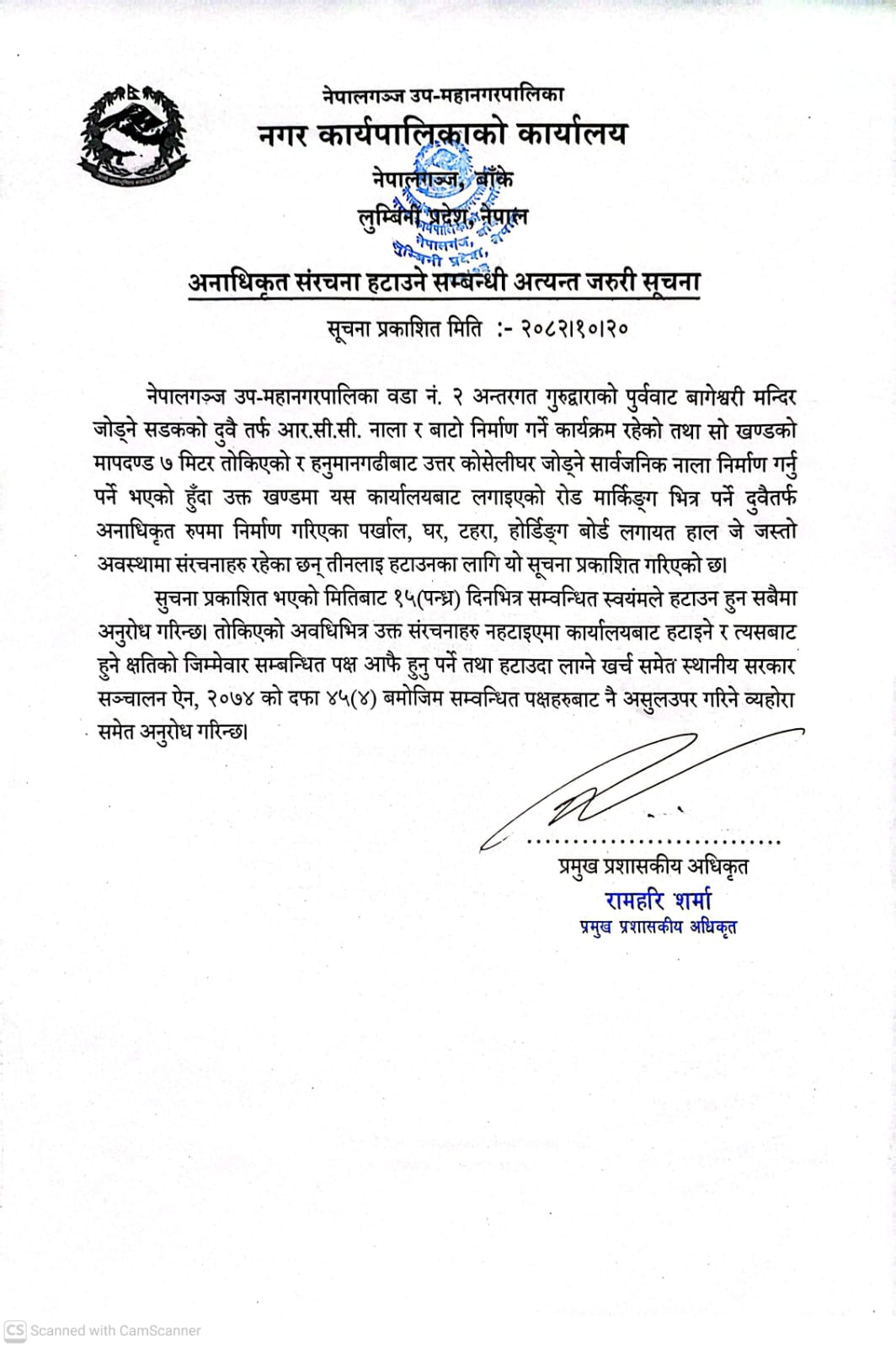 » अनाधिकृत संरचना हटाउने सम्बन्धी अत्यन्त जरुरी सूचना !!