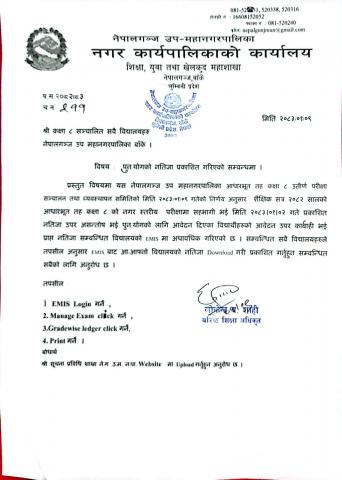 परिक्षाफल प्रकाशित गरिएको सम्बन्धमा !!