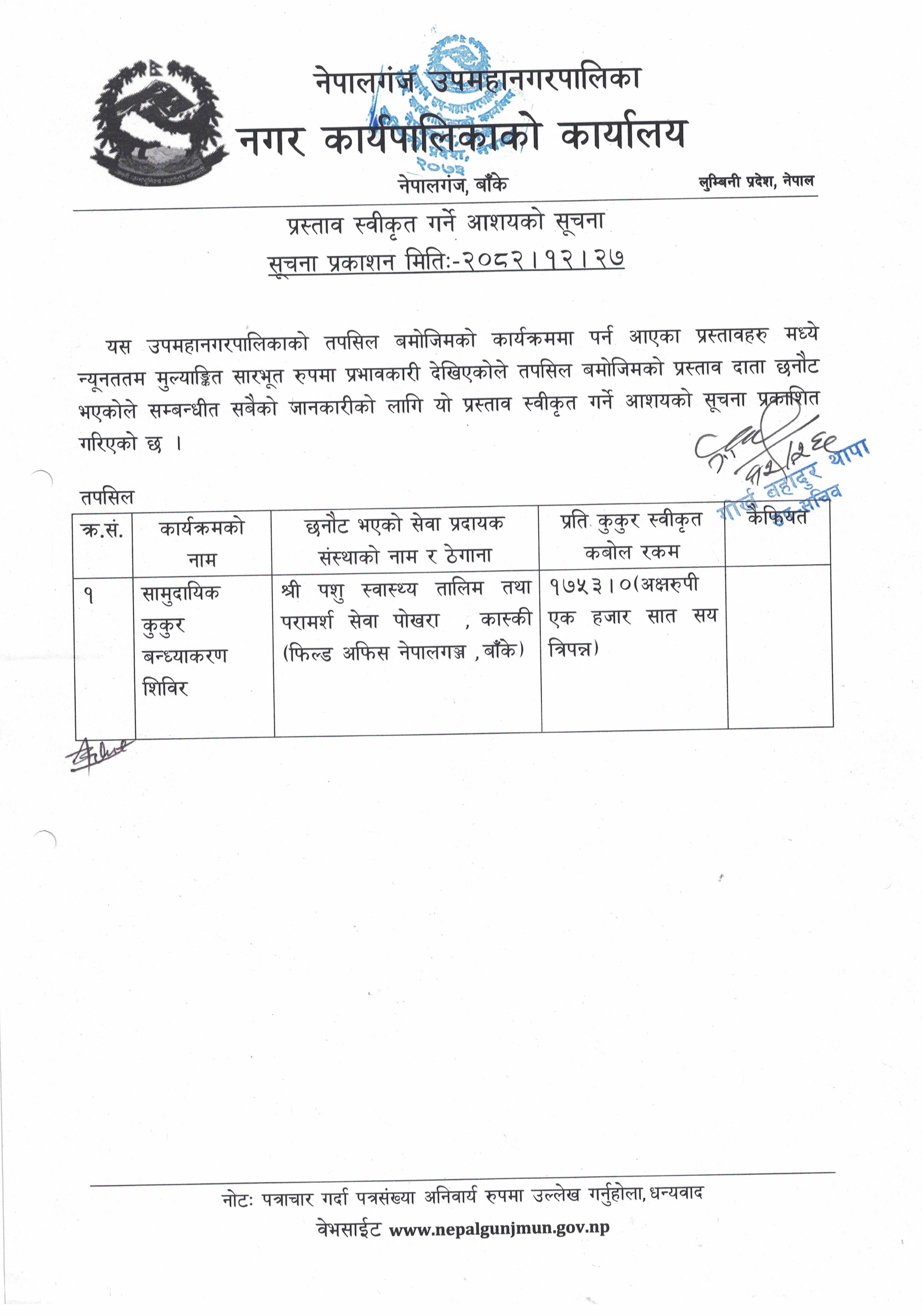 प्रस्ताव छनौटको सूचना !!