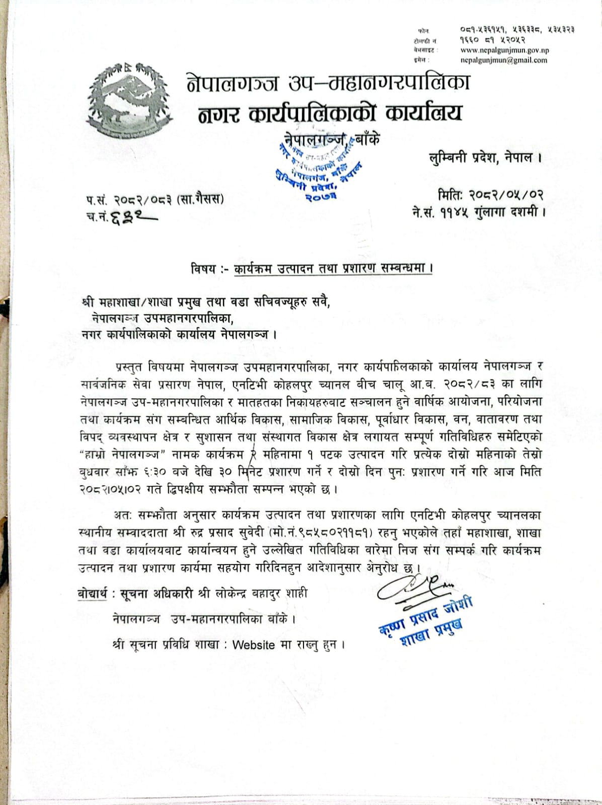 कार्यक्रम उत्पादन तथा प्रशारण सम्बन्धमा !!