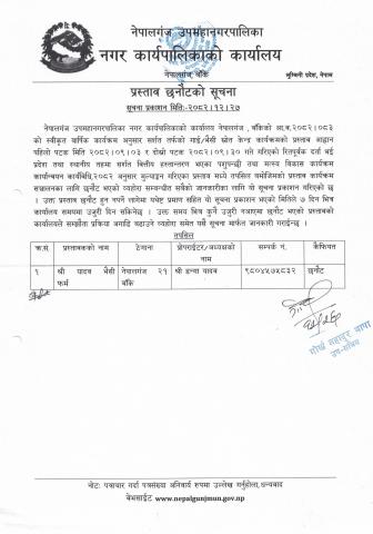 प्रस्ताव स्वीकृत गर्ने आशयको सूचना !!