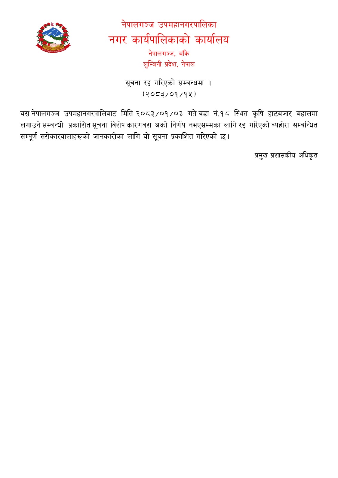 » सूचना रद्द गरिएको सम्बन्धमा !!